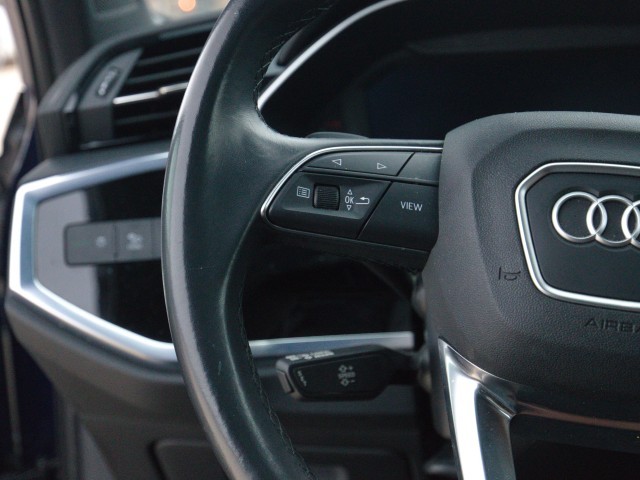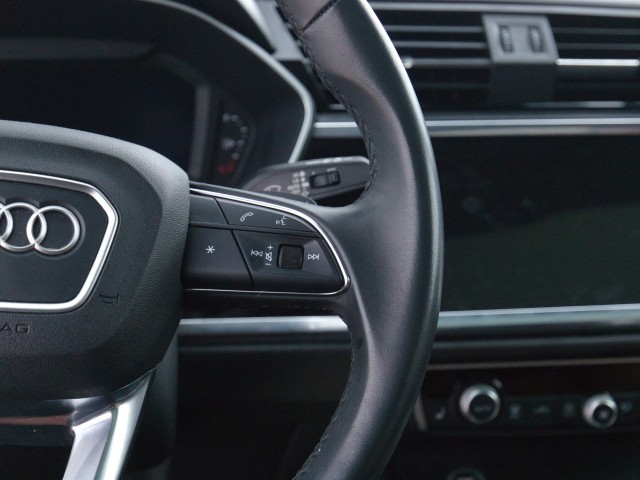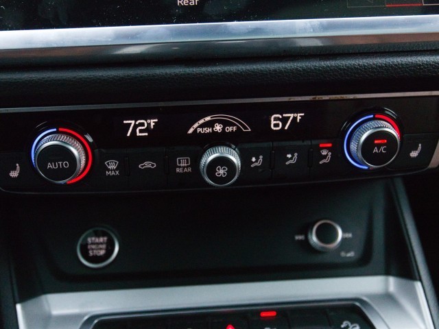 The Q3 Premium trim includes many standard features, such as: 18-inch wheels, S line styling package, LED headlights with automatic high-beam assist, Heated exterior mirrors, Panoramic sunroof, Power liftgate, 10.25-inch digital instrumentation panel, Leather upholstery, Power-adjustable and heated front seats, 40/20/40-split folding back seat, 8.8-inch touchscreen infotainment system, Apple CarPlay and Android Auto compatibility, Connected services with complimentary trial subscription, Frontal collision mitigation, Blind-spot warning with rear cross-traffic warning, Lane departure warning, Parking sensors.