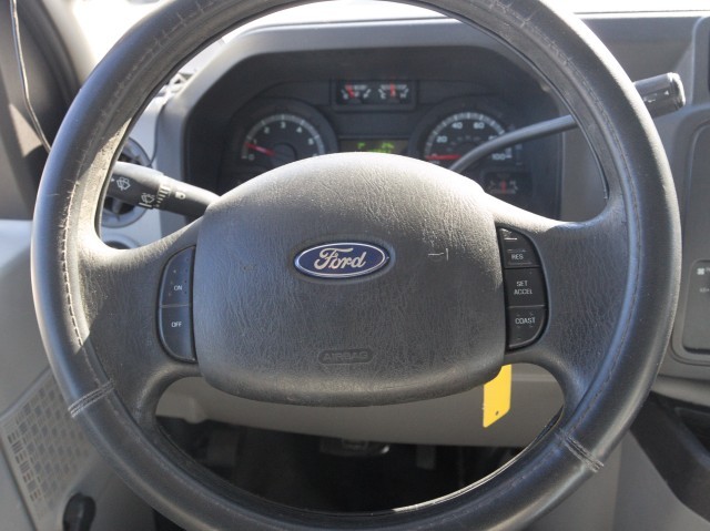 Standard Ford cargo vans are equipped with 16-inch steel wheels, a limited-slip differential, vinyl front bucket seats, vinyl front floor coverings, air-conditioning, a tilt steering wheel, manual telescoping mirrors and an AM/FM radio (with an auxiliary audio jack).