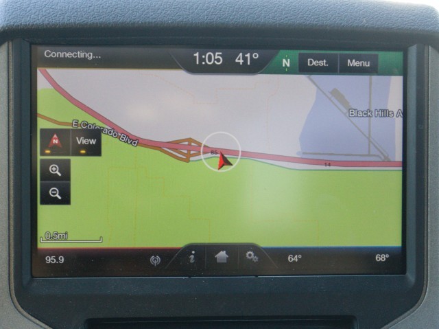 Lariat trim comes with foglights, power telescoping and folding mirrors, body-color door handles, rear parking sensors, automatic headlights, a power-sliding rear window with defrost, dual-zone automatic climate control, leather upholstery, a 4.2-inch color trip computer, wood-tone interior trim, an auto-dimming rearview mirror, the MyFord Touch infotainment system with an 8-inch touchscreen, upgraded Sync functionality, a rearview camera and an eight-speaker audio system.