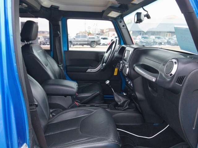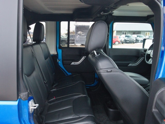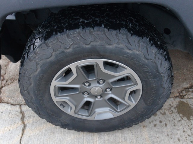 The Rubicon adds 17-inch alloy wheels, 32-inch tires, a heavy-duty Dana 44 front axle, a shorter 4.10 rear-axle ratio, an upgraded transfer case with a lower crawl ratio, electronic front and rear locking differentials, an electronically disconnecting front sway bar, rock rails, automatic headlamps and the under-hood insulation, air-conditioning plus the leather-wrapped steering wheel and shift knob, coat hooks, a 115-volt outlet and satellite radio.