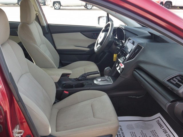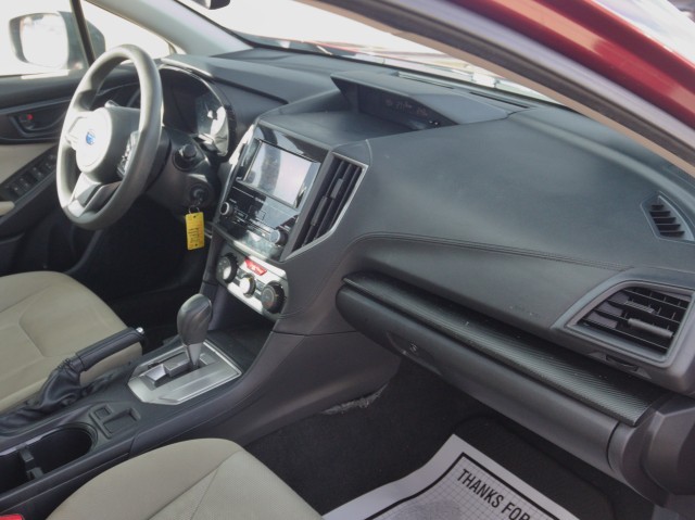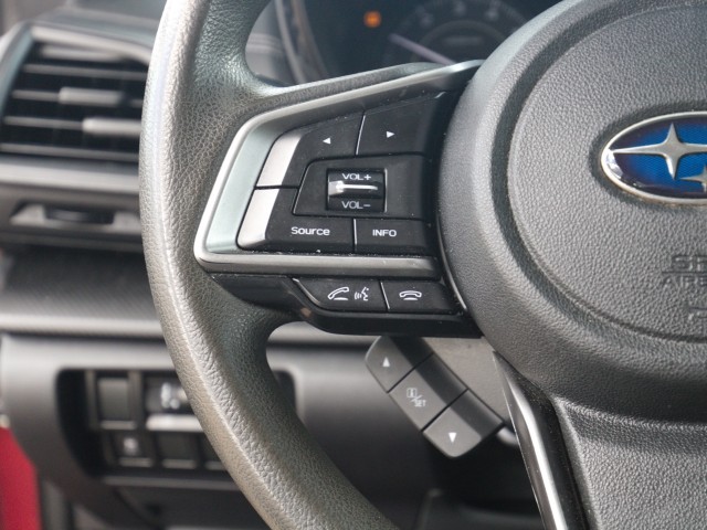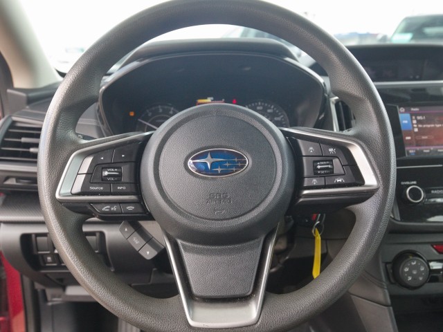 2019 Impreza comes standard with 16-inch steel wheels, daytime running lights, remote locking and unlocking, cloth upholstery, carpeted floor mats, a rearview camera, a tilt-and-telescoping steering wheel, a driver information display, a height-adjustable driver's seat, cruise control, a 60/40-split folding rear seat, Bluetooth, a 6.5-inch touchscreen, and a four-speaker audio system with a USB port and Android Auto and Apple CarPlay compatibility.