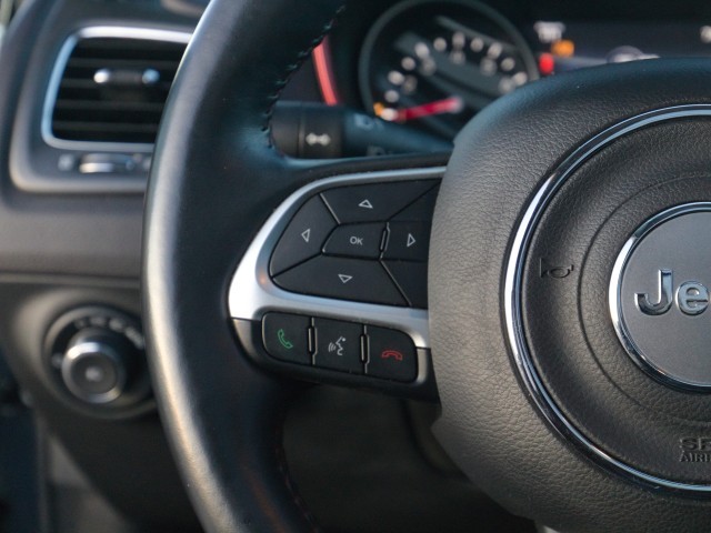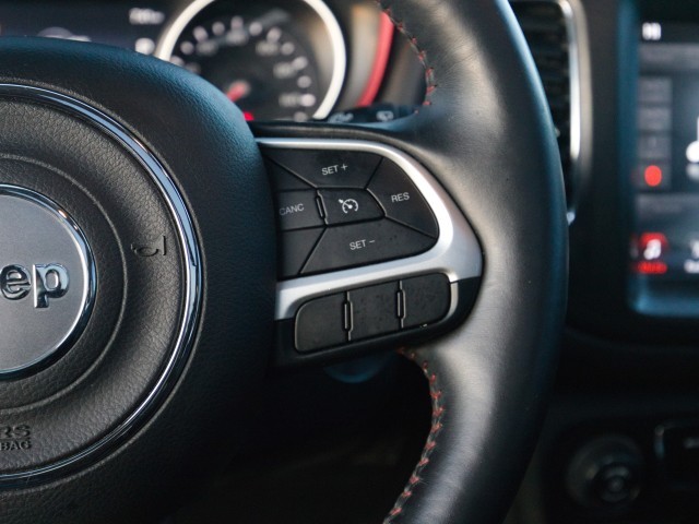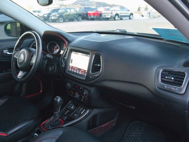 Trailhawk rides on 17-inch wheels with off-road-oriented tires, a raised suspension and a unique front fascia to maximize approach and breakover angles, Selec-Terrain system to help it crawl over steep climbs and rocky surfaces. Red tow hooks front and rear and a matte-black hood accent further differentiate the Trailhawk from the rest of the Compass line, while a hidden set of underbody protection shields keep the engine, oil pan and gas tank from harm's way.