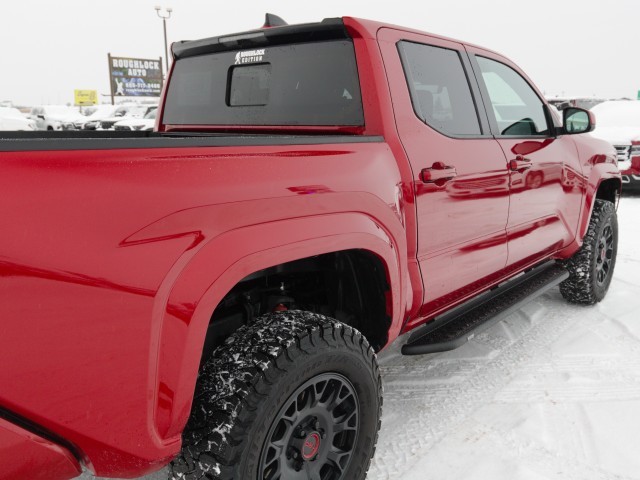 SR5 A better-equipped Tacoma by way of: 278-hp engine, 17-inch alloy wheels, Bed rails with movable tie-down cleats, Coil-spring rear suspension, Blind-spot warning with rear cross-traffic warning, Forward collision warning with automatic braking, Adaptive cruise control, Lane departure mitigation, Lane centering system.